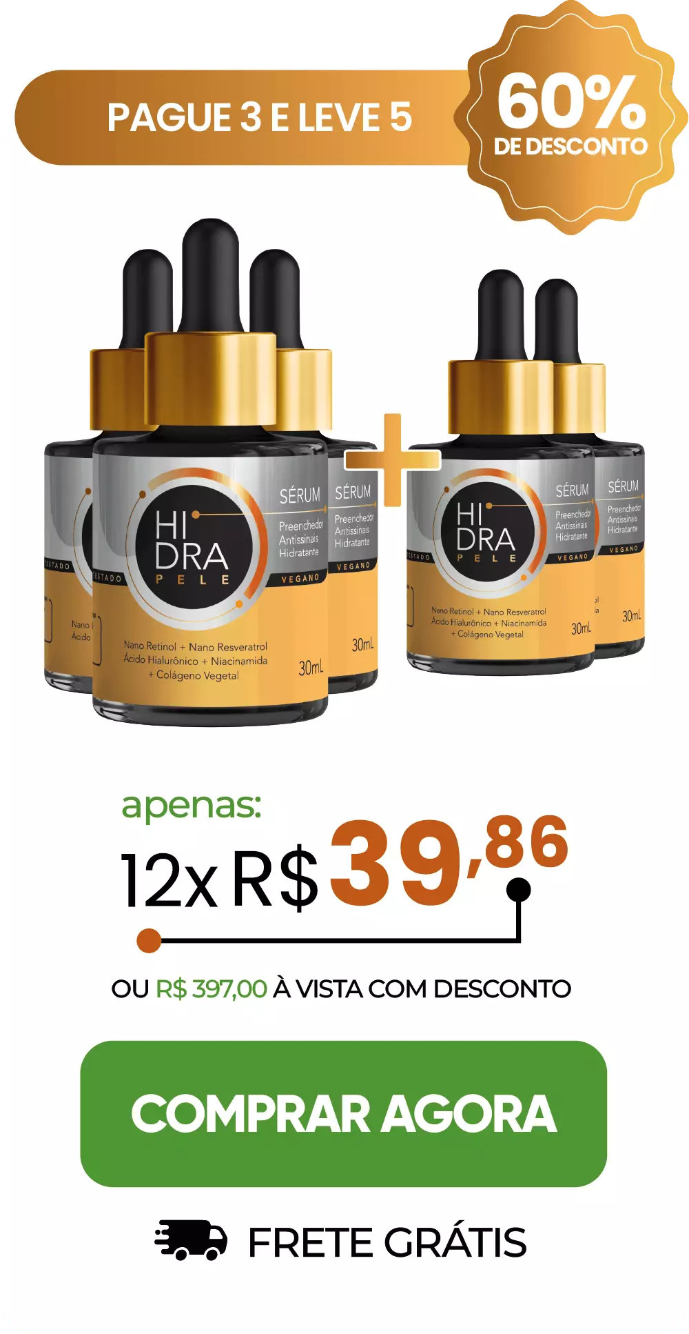 Com a Hidra Pele, a experiência é outra: ou você se encanta com os resultados obtidos… ou nós recolhemos todos os frascos de volta, pagando o mesmo valor que você desembolsou!