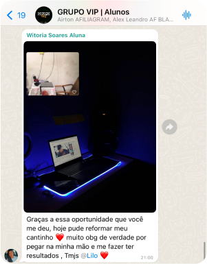 Você receberá todo o passo a passo que construí para ter liberdade que hoje todos os meus alunos desfrutam. Você irá entender o que é a Nova Profissão e tudo o que ela pode mudar em sua vida.